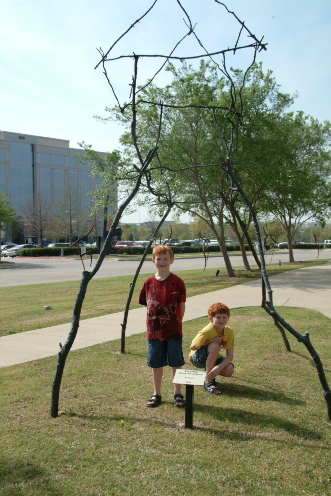 Although I am huge advocate for taking children to art museums early and often, I know that stuffy art galleries and silly kids are often not a good mix. That’s not to say that it isn’t worth the effort, but there is a certain amount of “girding your loins” involved in keeping young kids contained and sane in an art museum. Sometimes moms just can’t muster the intestinal fortitude for the task. That’s why I love, love outdoor art exhibits. Outdoor exhibits were made for little kids. The outdoors provides room for their bodies and space for their voices and the art is creative fuel for their little brains. The Texas Sculpture Garden certainly fits the bill.